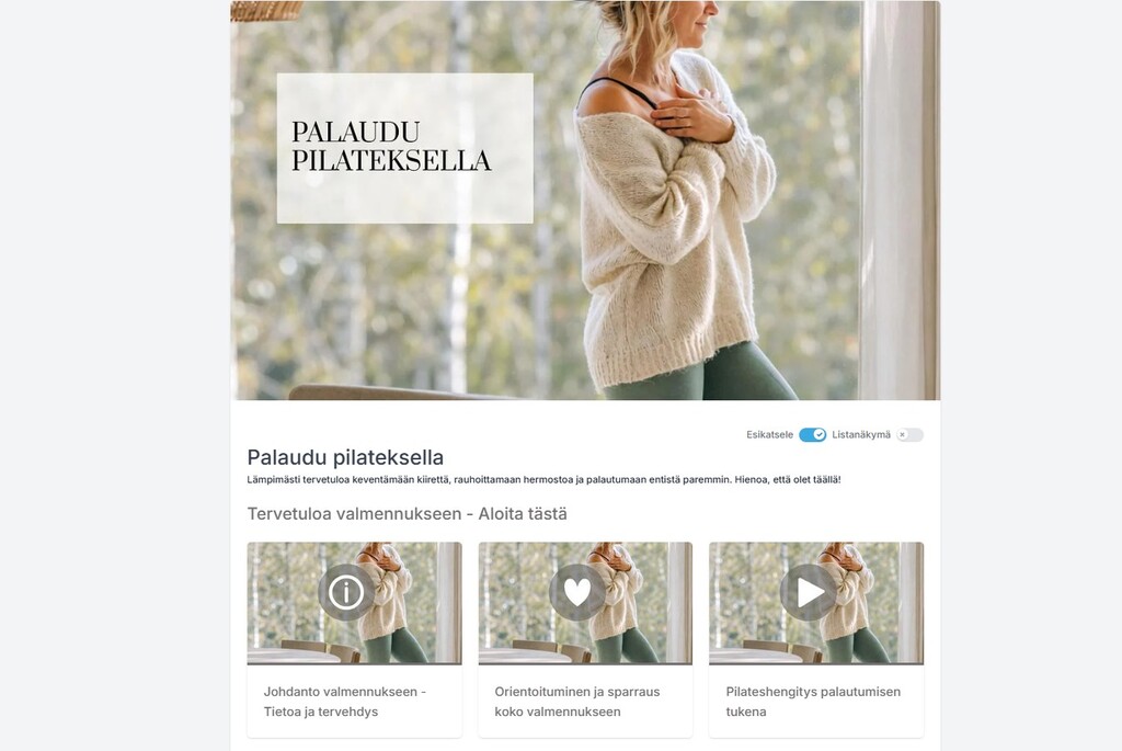 Loin tämän valmennuksen, jotta sinäkin saisit käyttöösi samat rauhoittavat tekniikat, joita hyödynnän niin pilatesasiakkaideni, kuin työnohjaus- ja terapia-asiakkaideni kanssa — käytännöllisesti, lempeästi ja ruuhkavuosiystävällisesti.